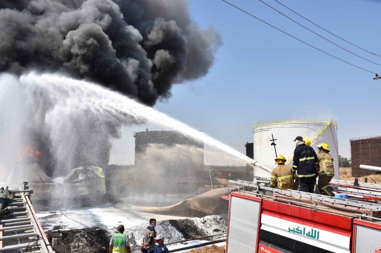 وقالت المديرية في بيان، تلقت "نبض العراق" نسخة منه، ان "الدفاع المدني يوفر الحماية لخزان مجاور يحتوي على ٥ مليون من مادة النفط الخام".