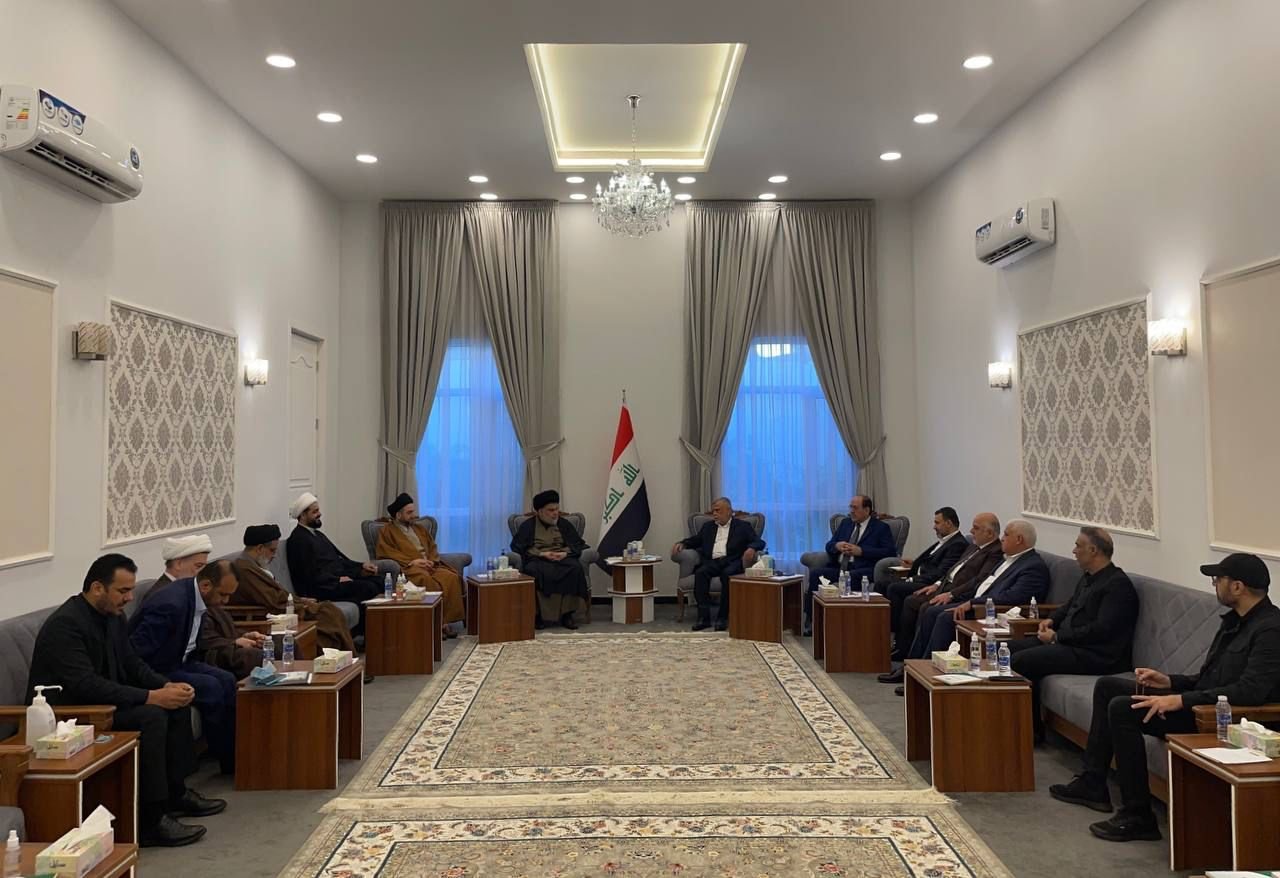 ووصل اليوم، وفدا يضم رئيس البرلمان محمد الحلبوسي وزعيم تحالف الفتح هادي العامري ورئيس هيئة الحشد الشعبي فالح الفياض إلى محافظة النجف والتقى بزعيم التيار الصدري، مقتدى الصدر.